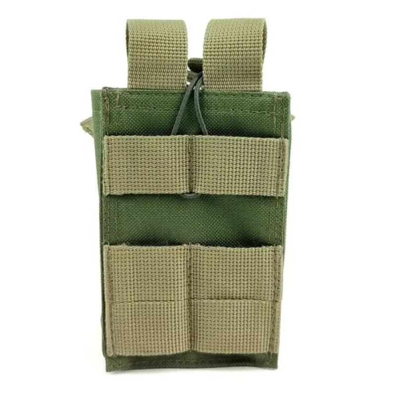 Назначение – используется для быстрого доступа к магазину в любой ситуации. Эластичный шнур надежно фиксирует и удерживает магазин.Прочная ткань с водоотталкивающим покрытием позволяет использовать результат в течение всего года в любую погоду.Система MOLLE позволяет крепить результат с магазином на поясе, бронежилете и другой экипировке.На передней стенке можно дополнительно разместить другие MOLLE-совместимые элементы.Дно итога снабжено люверсом для стока воды.Характеристики:Размер – 13х9,5х3 см;Ткань – Оксфорд 600D;Цвет – оливковый;Вес – 60 г.