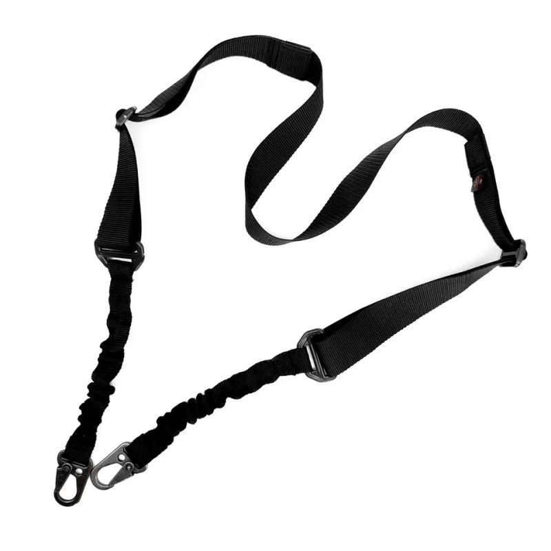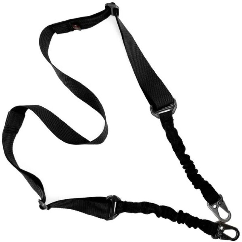 Тактический двухточечный ремень изготовлен из ременной ленты 4 см для большего комфорта при переносе оружия и безопасности при использовании.Имеет две точки фиксации и подходит для различных видов оружия.Длина регулируется двумя пряжками. К оружию крепится двумя металлическими карабинами.Эластичные вставки перед карабинами уменьшают нагрузку на плечо и снижают тряску при ходьбе и быстром перемещении.• Вес – 135 г.• Цвет –черный