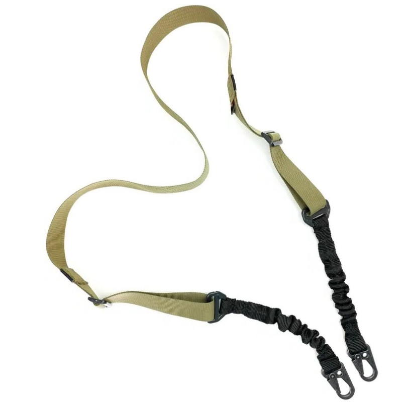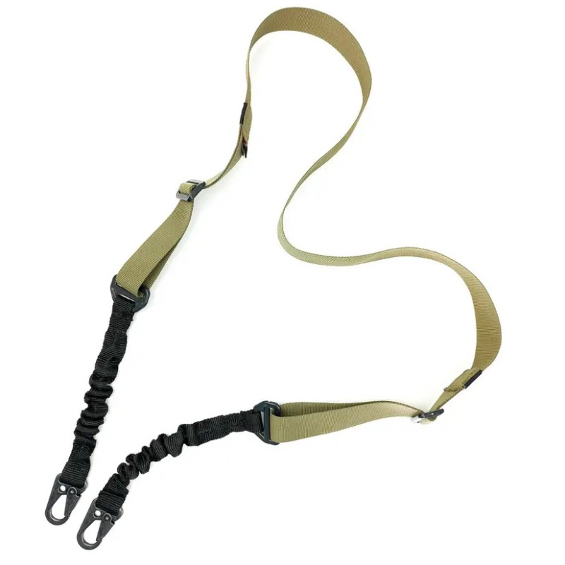 Тактический двухточечный ремень изготовлен из ременной ленты 4 см для большего комфорта при переносе оружия и безопасности при использовании.Имеет две точки фиксации и подходит для различных видов оружия.Длина регулируется двумя пряжками. К оружию крепится двумя металлическими карабинами.Эластичные вставки перед карабинами уменьшают нагрузку на плечо и снижают тряску при ходьбе и быстром перемещении.• Вес – 135 г.• Цвет – койот