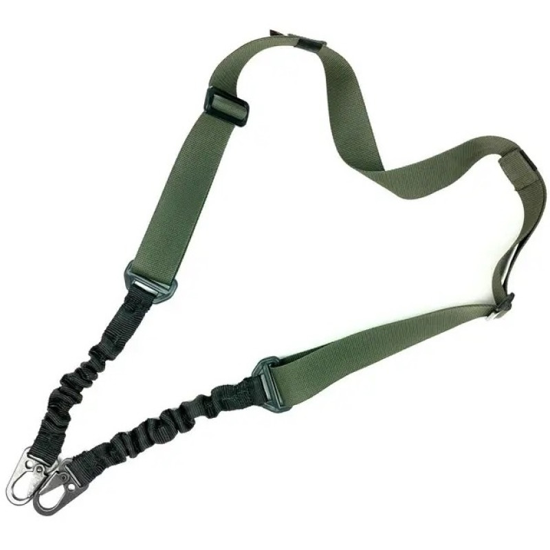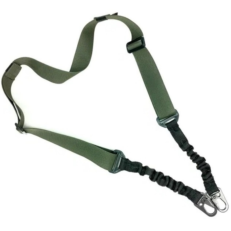 Тактический двухточечный ремень изготовлен из ременной ленты 4 см для большего комфорта при переносе оружия и безопасности при использовании.Имеет две точки фиксации и подходит для различных видов оружия.Длина регулируется двумя пряжками. К оружию крепится двумя металлическими карабинами.Эластичные вставки перед карабинами уменьшают нагрузку на плечо и снижают тряску при ходьбе и быстром перемещении.• Вес – 135 г.• Цвет –олива