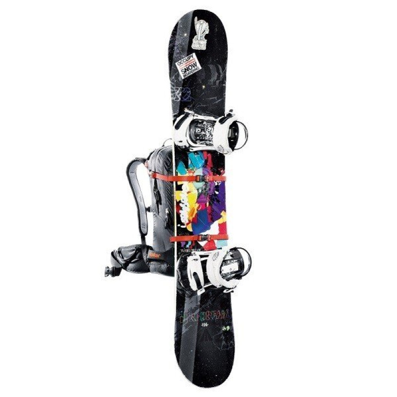 - посилені компресійні ремені для кріплення сноуборду, снігоступів та лиж з боків. Лижі можна кріпити також на фронтальній частині по діагоналі припомощи верхньої петлі.
