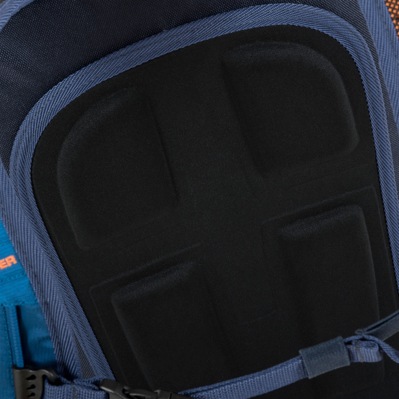 - Плечевые шлейки регулируются по высоте, анатомической формы с перфорированными вставками из EVA-пены, обшиты дышащей сетчатой тканью