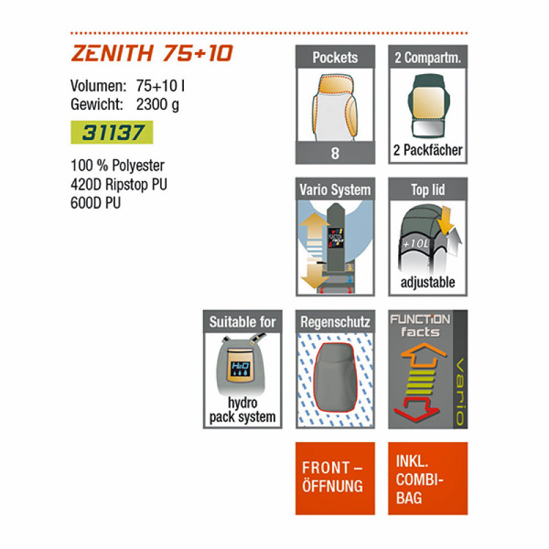 • Системы VARIO system  позволяет оперативно настроить максимально комфортную посадку рюкзака на спине человека с учетом анатомических особенностей человека
