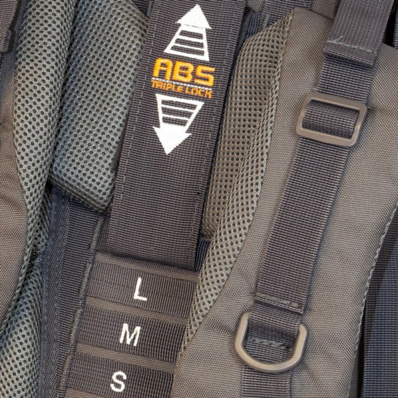 - Подвесная система ABS Triple Lock для регулировки по высоте, надежной фиксации и идеальной посадки рюкзака на спине