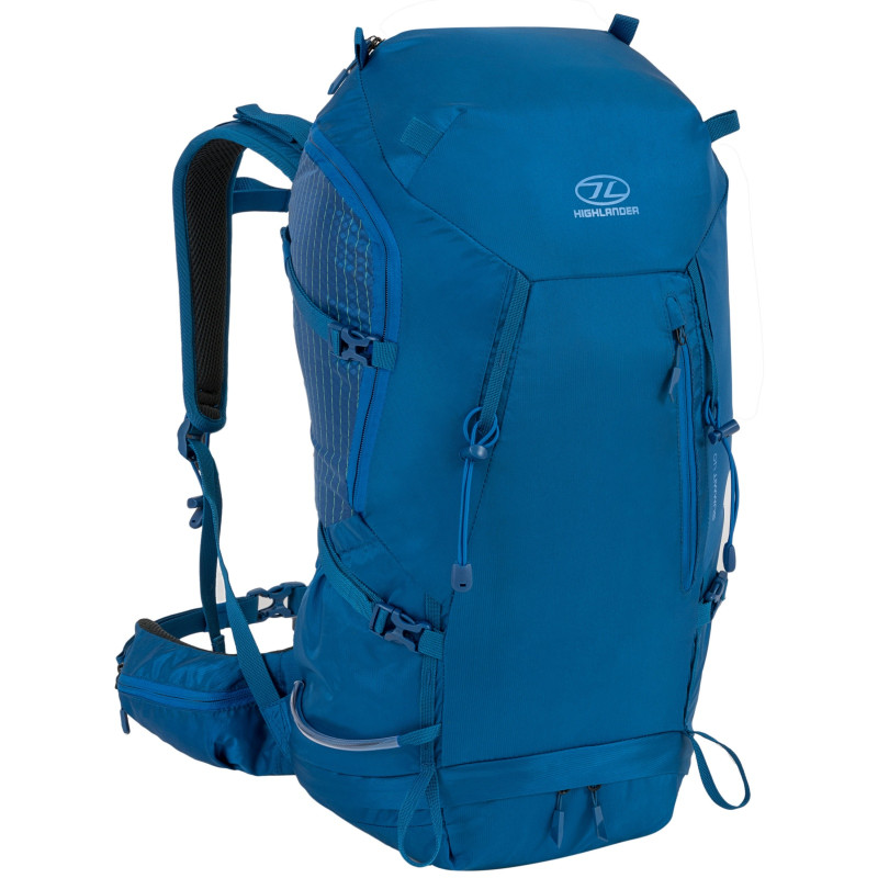 Highlander Summit 40 Marine Blue - среднеразмерный туристический рюкзак, адаптированный под питьевую систему, с полностью вентилируемой спинкой и чехлом от дождя, что делает его подходящим для активных походов выходного дня. Рюкзак может использоваться для альпинизма, поскольку оснащен поясным ремнем, нагрудной стяжкой, внешними петлями для навеса треккинговых палок, ледоруба и другого дополнительного оборудования.
