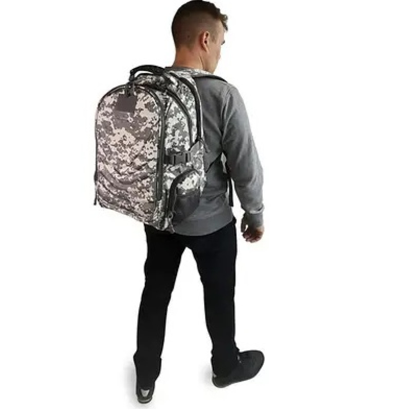 Военный рюкзак, использовать который можно как штурмовой, армейский, военный, туристический или городской.Выведены на лямку вход USB и 3.5 для проводных наушников; 3 отдела.Средний отсек – объемный.Отдел у спины с карманом для ноутбука, карманом для пауэрбанка или плеера с выведенными проводами.Плоский наружный отдел с 4 небольшими карманами для аксессуаров.Два внешних боковых кармана на молнии; Два внешних боковых кармана из сетки.Специальные демферные лямки и спинка; Удобная ручка для переноски со стальным тросом.Место для шеврона.Эргономичные плечевые ремни шириной 6 см, регулируемые по длине.Сверху комплектуется ручкой для переноски.Характеристики:Ткань – Оксфорд 600D;Объем – 36 литров;Цвет – пиксель;Вес – 1,2 кг.