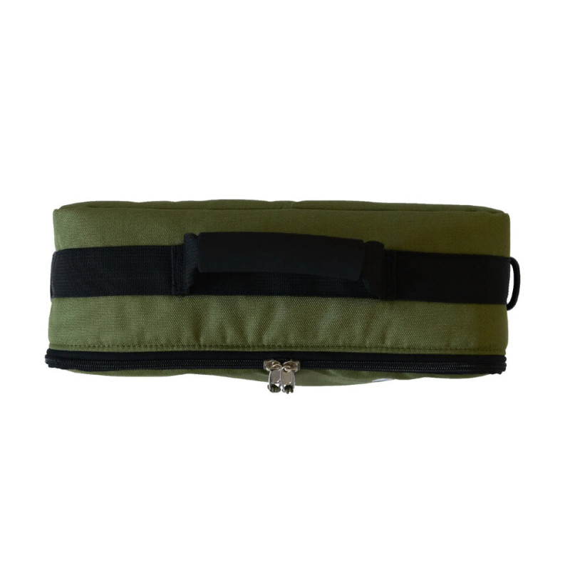 Також в даній моделі присутній ремінь, що дозволяє нести сумку на плечі. Зовнішні стінки сумки мають товстий наповнювач, який запобігає пошкодженню котушок під час транспортування. Розміри сумки 40х28х14 см.