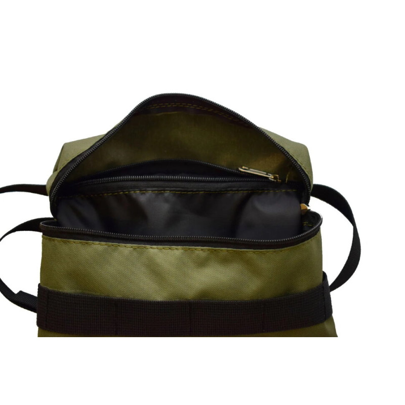 В середині сумка оснащена додатковим кишенею для зберігання цінних речей. Для пошиття використовується тканина поліестер 600D. розміри сумки складають 25х20х5 см.за допомогою ременя її легко можна закріпити на поясі. Довжина ременя становить 80 см.