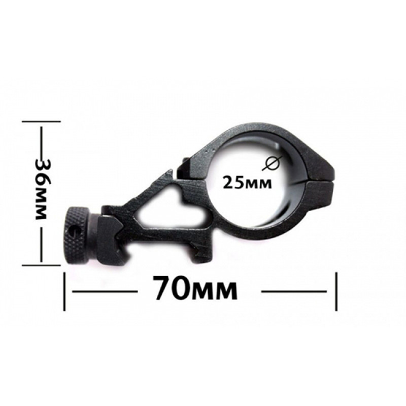 Відносно недорогий бічній кронштейн призначений для кріплення на нарізну зброю тактичного ліхтаря. Кріплення розроблено для установки на зброю, обладнане планками Пикатинни. Кронштейн виготовлений з алюмінію і має анодоване покриття, що характеризується високою механічною стійкістю.