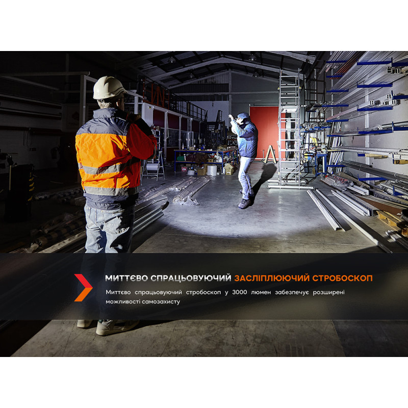 - Миттєвий стробоскоп: затискання допоміжного перемикача при вимкненому ліхтарі.