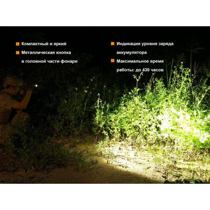 Комплектація | Ліхтар, чохол, ремінець на руку, 2 ущільнювальних кільця, запасна гумова накладка на кнопку, інструкція, гарантія | |||||