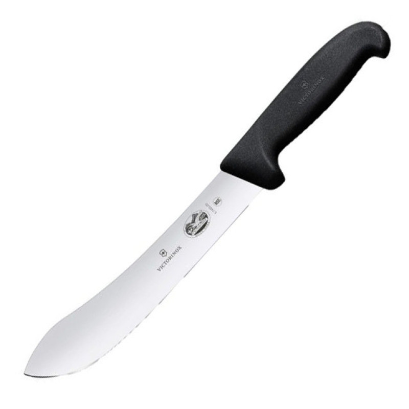 Професійний ніж м'ясника Fibrox Slaughter & Butcher з лезом 20 см (широке, вигнуте) і чорної безпечної ручкою Safety Nose Victorinox 5.7403.20 Швейцарія