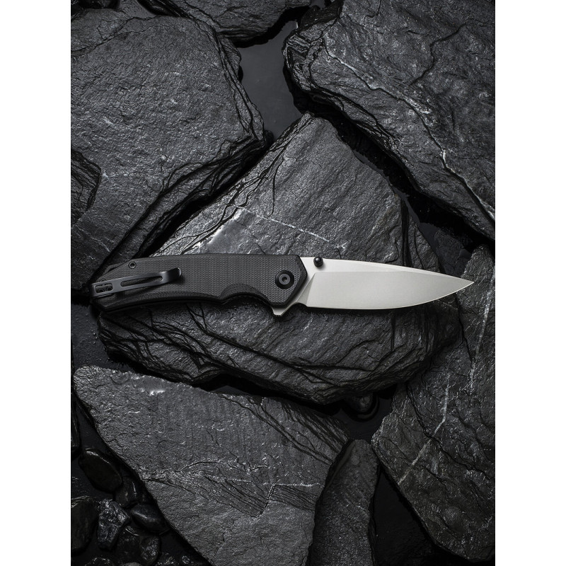 Рукоятка моделі зроблена із застосуванням склотекстоліту G10. Міцний та легкий матеріал із скловолокна та синтетичної смоли. Легка текстура чудово лежить у руці та забезпечує достатнє захоплення. Ніж має кліпсу, за допомогою якої легко закріпити на рюкзаку, сумці, підвісити до кишені або на поясі.