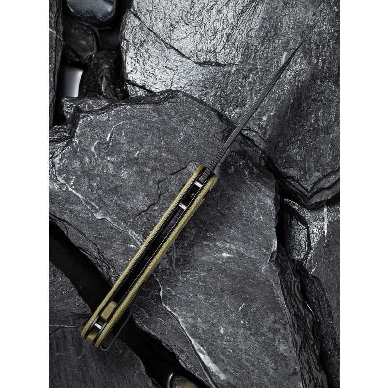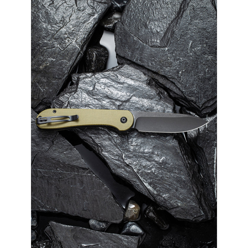 Лезо моделі має форму drop point, яка дуже зручна як при виконанні ріжучих, так і колючих операцій. В основі клинка – сталь марки Sandvik 14C28N. Даний матеріал характеризується стійкістю до корозії і легко піддається заточуванню. Це досить міцна ножова сталь. Ручка ножа виготовлена із застосуванням мікарти. Композитний матеріал із льону та синтетичної смоли. Він виглядає чудово і забезпечує достатнє зчеплення.