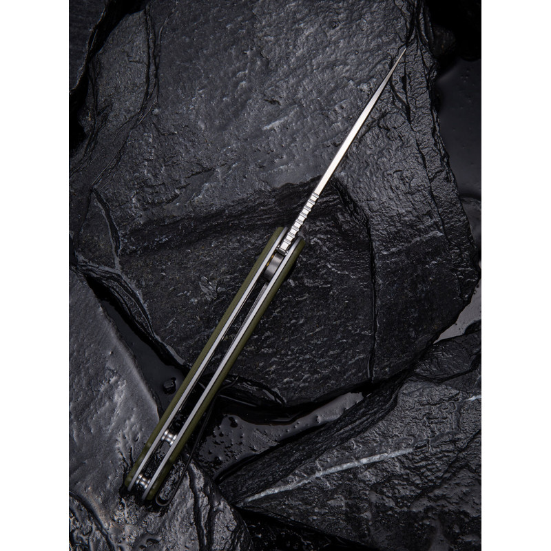 Форма леза ножа: drop point. Твердість сталі досягає показника 61 одиниця за шкалою Роквелла. Це досить високе значення ножової продукції. Ніж добротний і добре впорається із завданнями на відкритому повітрі, тому його є сенс використовувати туристам, мандрівникам. Ніж забезпечений спеціальною кліпсою, яка дозволяє прикріпити її до кишені або повісити на поясі або причепити до рюкзака.