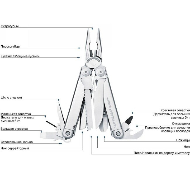 Комплект: Leatherman Surge, шкіряний чохол, подарункова коробка.