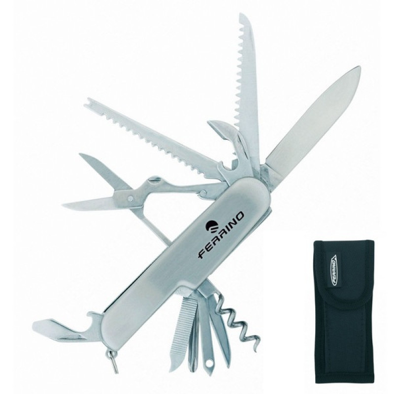 Карманный мультитул Ferrino 11 Functions, как следует из названия, имеет 11 инструментов, чего будет вполне достаточного для выполнения большинства задач в походных условиях. Корпус и инструменты полностью выполнены из нержавеющей стали, что гарантирует устойчивость к ткоррозии и длительное использование мултитула. Мультитул укладывается в небольшой текстильный чехол на застежке Velcro с возможностью крепления.