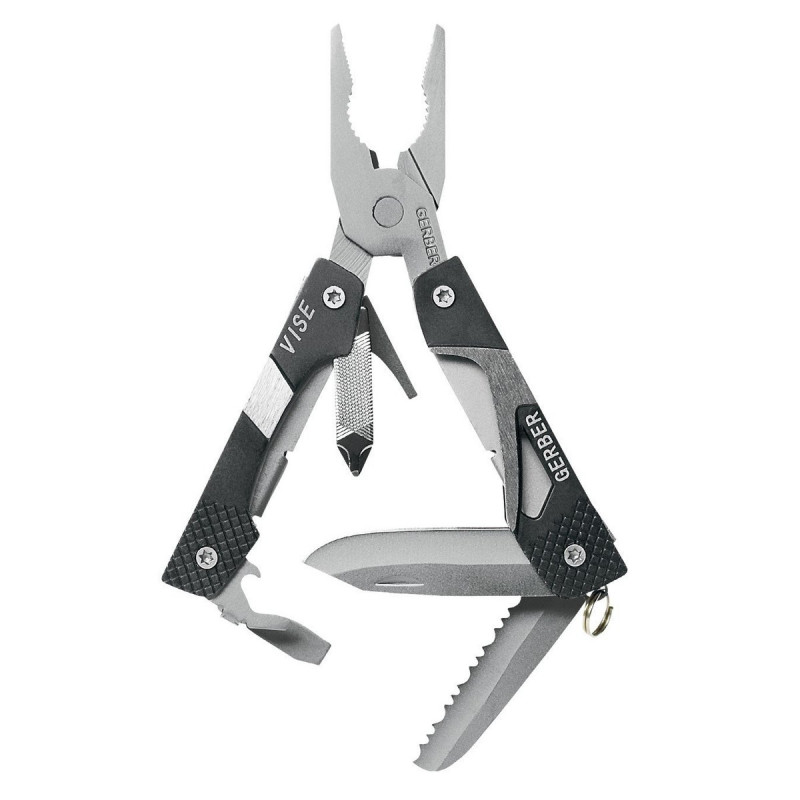 Мультитул під назвою Vise Pocket Tool входити в число інструментів брелочного типу, представлених у колекції Gerber. У складеному положенні його довжина становить лише 5,08 см. Ширина інструменту — 2,54 див. Його можна не тільки носити разом з іншими інструментами або ж окремо — в кишені, але й використовувати як брелок (для цього є спеціально металеве кільце). Центральний інструмент мультитула — це плоскогубці. Незважаючи на невеликий розмір, вони досить практичні, а до того ж, доповнені затиском для болтів і кусачками. Як і належить, інші елементи розташовуються всередині ручок плоскогубців. В одній з них знаходяться два ножі довжиною 3,81 см, один з яких заточений гладко, а другий — серрейторной заточкою, маленька хрестова викрутка. Дві плоскі викрутки, відкривачка для пляшок, мініатюрний напилок розміщуються в інший рукоятці. Всі ці інструменти виготовляються з нержавіючої сталі і здатні довго прослужити навіть у тому випадку, якщо мультитул буде використовуватися на риболовлі, пікніках і в інших умовах, де можливий контакт мультитула з водою. В якості матеріалу для ручок виробники також взяли метал. Однак, щоб полегшити загальний вага мультиинструмента, цього разу перевагу було віддано алюмінію. Його поверхня зазнала анодуванню, що і вплинуло на колір рукояток (чорний). Особливості:- мультитул брелочного типу;