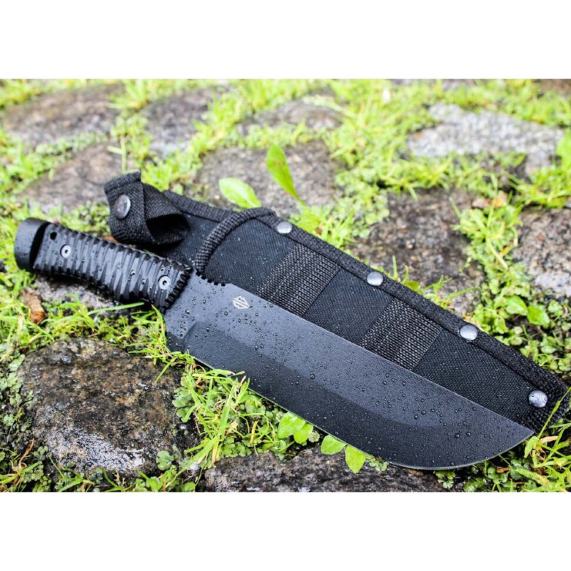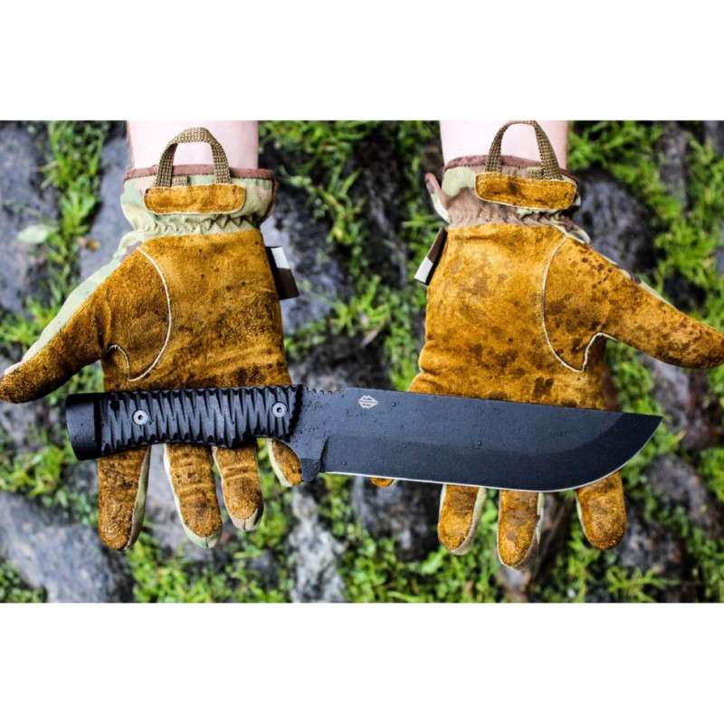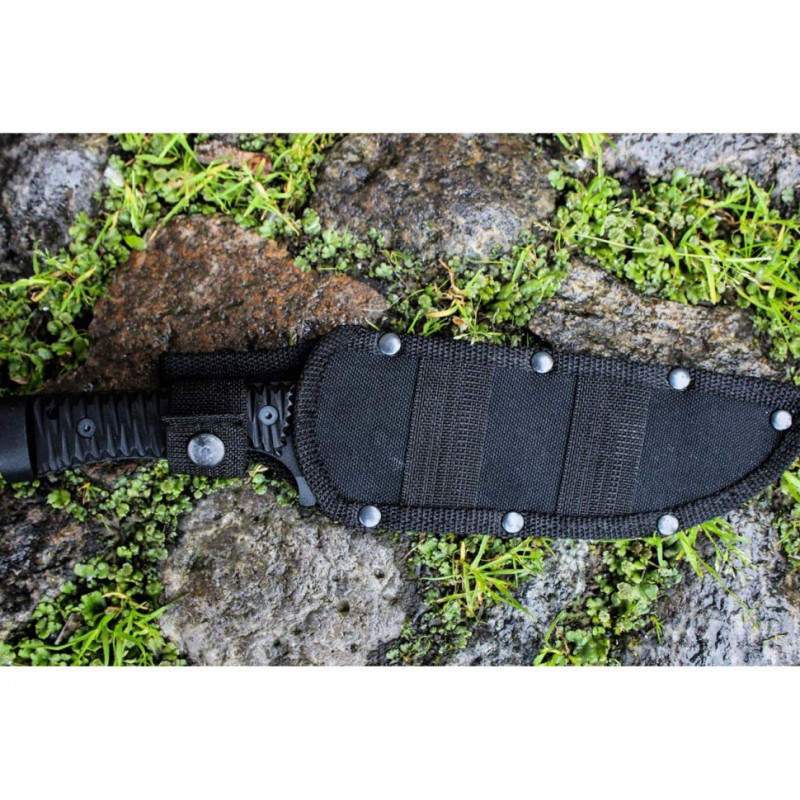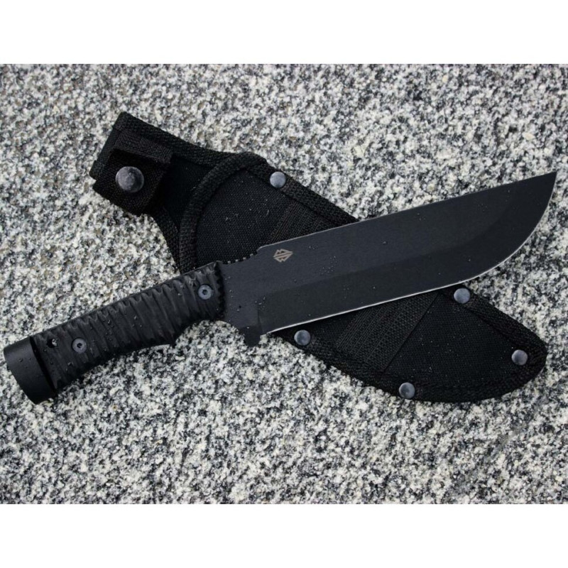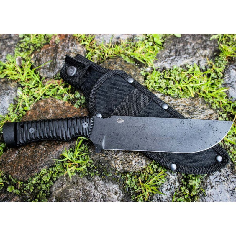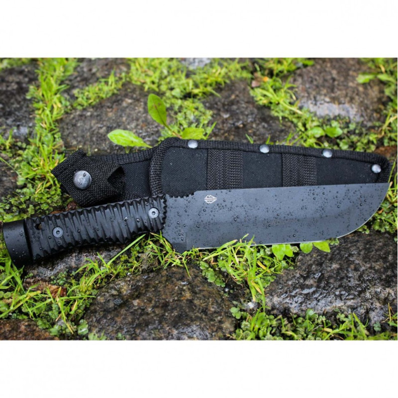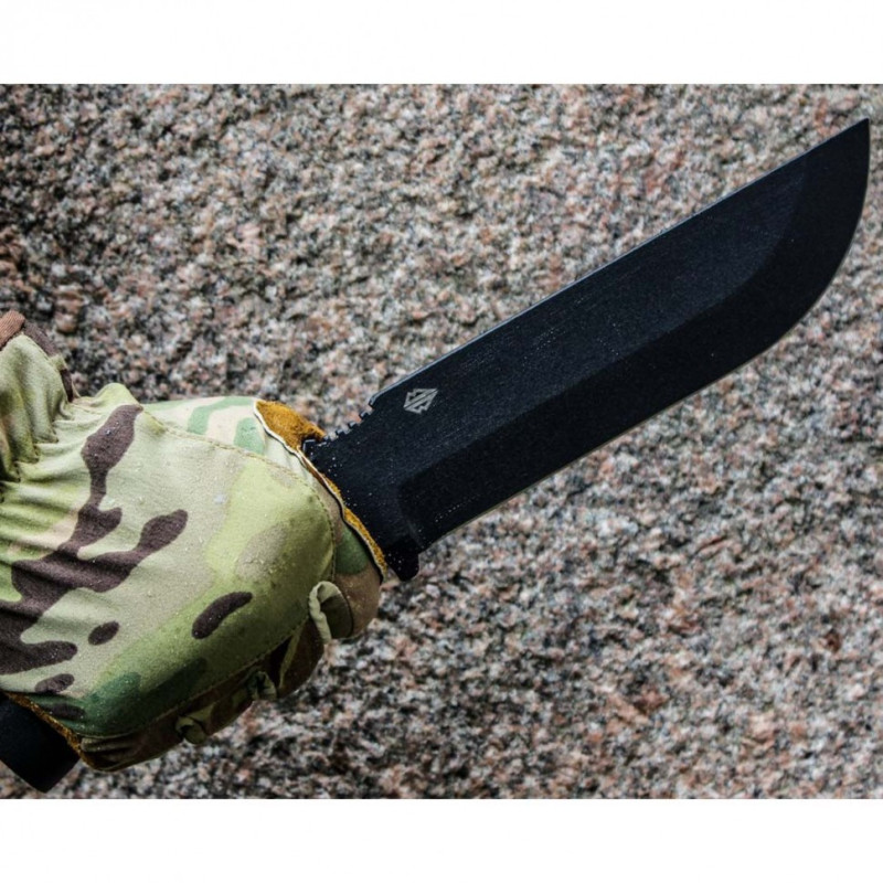 Лезо гостре і розраховано на сильний рубаючий удар. Руків'я плоске, рифлене і не ковзає. Матеріал ножа – 65Г, ресорна криця, загартована для підвищення твердості до 55 HRC. Це оптимальні показники, такий ніж добре тримає заточування, в тій же година, його можна нагострити або підправити в польових умовах. Полімерне покриття захищає від корозії. Кордурові піхви забезпечують надійну фіксацію.