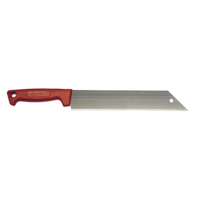 Рукоятка ножа изготалвивается з особливою різновиди пластику. Даний матеріал надзвичайно міцний, не боїться ні води, ні сонячних променів. До того ж, завдяки простоті формування, рукоятка зроблена максимально зручною. Працювати з таким ножем буде комфортно навіть протягом цілого дня. З двох кінців рукоятки є невеликі пониження, які захищаю пальці власника ножа від зісковзування на гостре лезо і не дають упустити клинок з рук випадково.