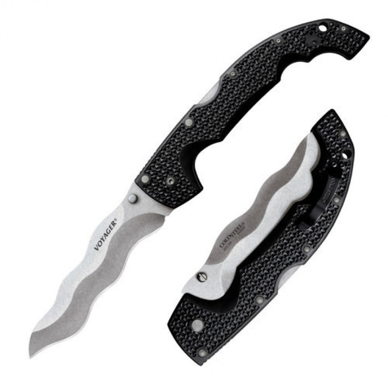 Voyager - одна із самих надійних моделей в асортименті Cold Steel: під час випробувань ножа цієї лінійки з клинком 127 мм в розкритому стані він не склався при навантаженні на рукоятку в 54,45 кг. Завдяки поєднанню надійності і практичності, Voyager можна назвати одним з найбільш універсальних складних ножів, які можуть використовуватися як в міських умовах, так і в аутдорі.