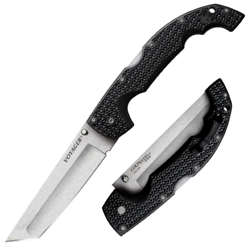 Складаний ніж XL Voyager Tanto від Cold Steel вражає значними розмірами і досконалістю ліній. Матеріал клинка AUS-10A – японська нержавіюча сталь високої якості.