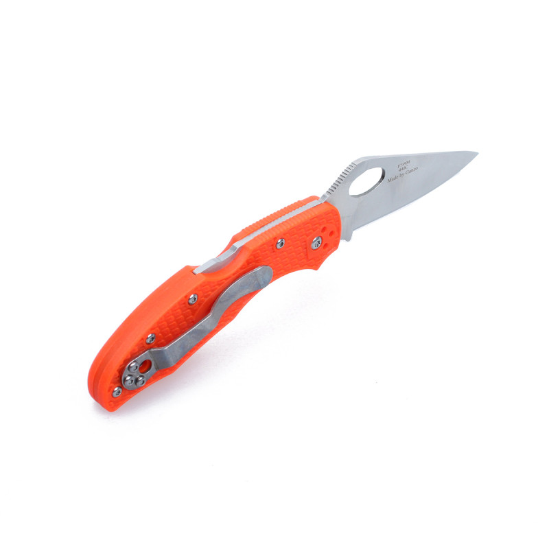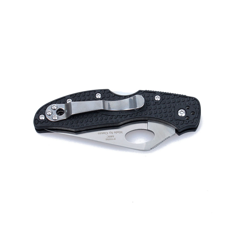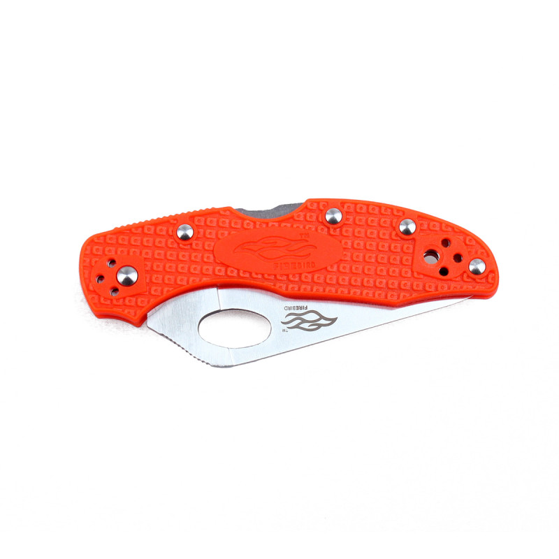 Невеликий складаний ніж здатний допомогти вирішити дуже багато питань, що виникають не тільки в місті, але і під час будь-яких поїздок на природу. Якщо для цих цілей ви хочете підібрати компактну, зручну і оригінальну модель, Firebird F759M підійде під кожен з перерахованих критеріїв. Загальні розміри ножа — 17,5 см, а в складеному вигляді він ще більш компактний, важить 67 грам. Такий ніж точно не здасться важким для того, щоб носити його в кишені. До того ж, він дуже цікаво оформлений і зроблений дуже довговічним. Лезо в даній моделі — нержавіюче. Для нього виробники взяли сталь 440С з показником твердості 58 HRC. Такий метал буде довгий час зберігати відмінний рівень заточування. Враховуючи, що кромка леза Firebird F759M зроблена гладкою, поєднувати її власник ножа зможе і самостійно. Розмір безпосередньо леза становить 75 мм. Помітно розширюється до ручки клинок оброблений на фінішному етапі за методом сатинування, за рахунок чого на його поверхні стають майже непомітними різні відбитки і невеликі подряпини, а значить, довше ніж виглядає зовсім новим. Отвір, який зроблено в лезі служить для відкриття ножа. У відкритому положенні клинок Firebird F759M фіксується спеціальним замком, конструкція якого називається Back Lock. Він довговічний, не спрацьовує без участі користувача, досить простий у догляді. Що стосується рукоятки, то вона може бути оранжевою, чорної, рожевий або блакитний. Матеріалом для яскравих накладок послужив наповнений скловолокном нейлон. Це дуже міцний і стійкий до різного роду впливів матеріал, який прослужить багато років. Щоб ніж не прослизав у долоні, накладки зроблені текстурними. Щоб закріпити ніж у кишені і виключити його випадіння під час перенесення, рекомендується використовувати притискну кліпсу. Її можна встановити в тому положенні, яке здасться найбільш зручним (все можливе 4 варіанти). Особливості:- невеликий кишеньковий ніж;