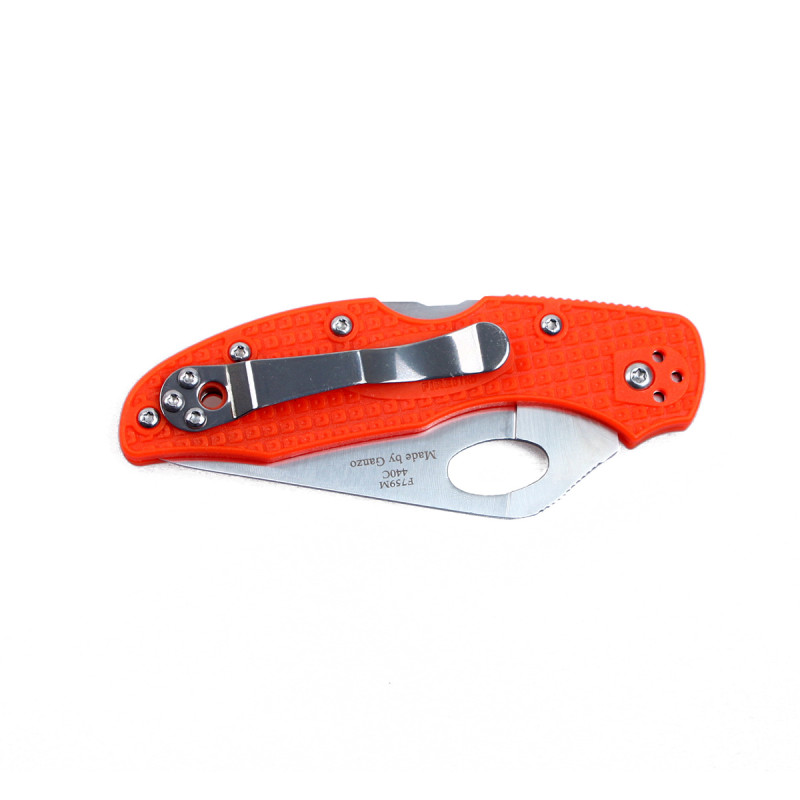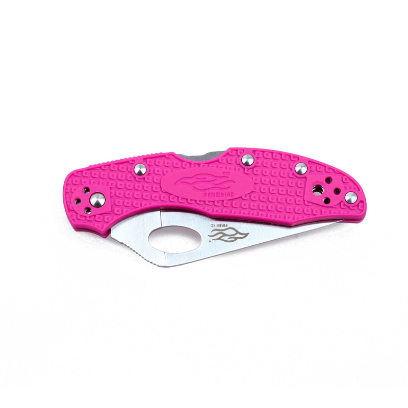 Невеликий складаний ніж здатний допомогти вирішити дуже багато питань, що виникають не тільки в місті, але і під час будь-яких поїздок на природу. Якщо для цих цілей ви хочете підібрати компактну, зручну і оригінальну модель, Firebird F759M підійде під кожен з перерахованих критеріїв. Загальні розміри ножа — 17,5 см, а в складеному вигляді він ще більш компактний, важить 67 грам. Такий ніж точно не здасться важким для того, щоб носити його в кишені. До того ж, він дуже цікаво оформлений і зроблений дуже довговічним. Лезо в даній моделі — нержавіюче. Для нього виробники взяли сталь 440С з показником твердості 58 HRC. Такий метал буде довгий час зберігати відмінний рівень заточування. Враховуючи, що кромка леза Firebird F759M зроблена гладкою, поєднувати її власник ножа зможе і самостійно. Розмір безпосередньо леза становить 75 мм. Помітно розширюється до ручки клинок оброблений на фінішному етапі за методом сатинування, за рахунок чого на його поверхні стають майже непомітними різні відбитки і невеликі подряпини, а значить, довше ніж виглядає зовсім новим. Отвір, який зроблено в лезі служить для відкриття ножа. У відкритому положенні клинок Firebird F759M фіксується спеціальним замком, конструкція якого називається Back Lock. Він довговічний, не спрацьовує без участі користувача, досить простий у догляді. Що стосується рукоятки, то вона може бути оранжевою, чорної, рожевий або блакитний. Матеріалом для яскравих накладок послужив наповнений скловолокном нейлон. Це дуже міцний і стійкий до різного роду впливів матеріал, який прослужить багато років. Щоб ніж не прослизав у долоні, накладки зроблені текстурними. Щоб закріпити ніж у кишені і виключити його випадіння під час перенесення, рекомендується використовувати притискну кліпсу. Її можна встановити в тому положенні, яке здасться найбільш зручним (все можливе 4 варіанти). Особливості:- невеликий кишеньковий ніж;