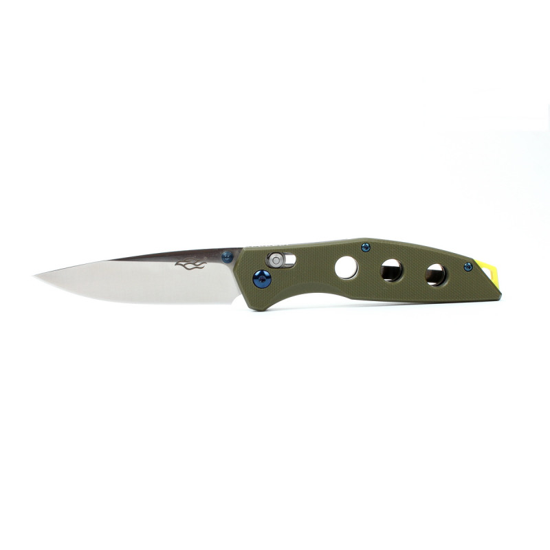 Відкрити Firebird FB762 можна за допомогою спеціального двостороннього шпенька. У робочому положенні він буде зафіксований за допомогою замка Axis-lock. Незважаючи на те, що цей механізм досить міцний, він дуже сприйнятливий до дрібних забруднень (пил/пісок), тому рекомендується своєчасно чистити ніж.