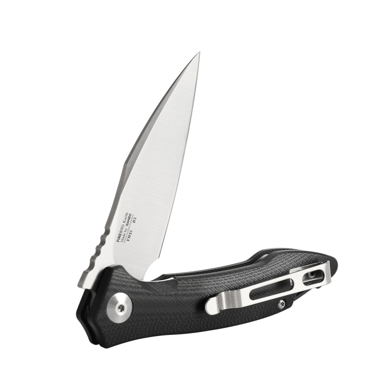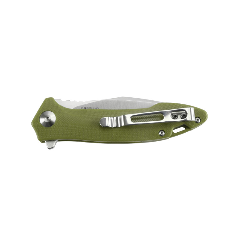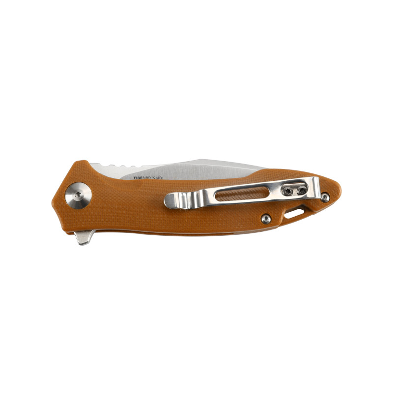 Довжина леза Firebird FH51 становить 81 мм. Воно має класичну форму Clip point з гострим кінчиком і скошеним обухом. У даній моделі навіть реалізований ефект фальшлезвия. Справжня ріжуча кромка зроблена добре заточеною. Клинок відшліфований шляхом сатинування, що знижує рівень утворення відблисків на сонці і робить абсолютно непомітними невеликі подряпини або потертості на металі.