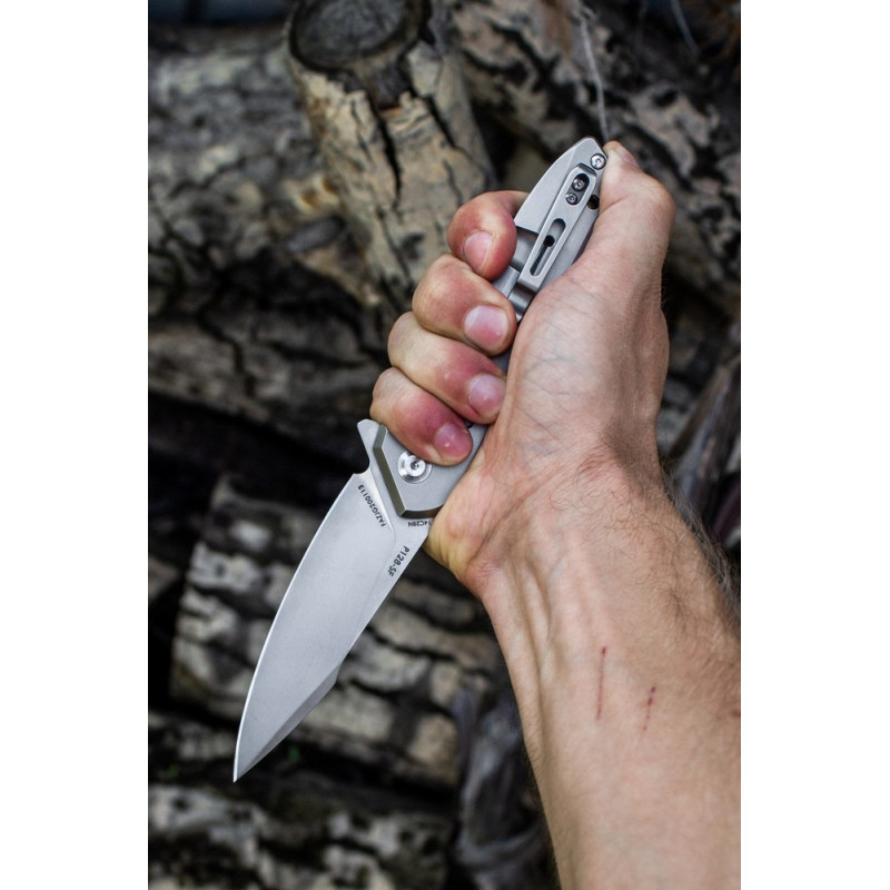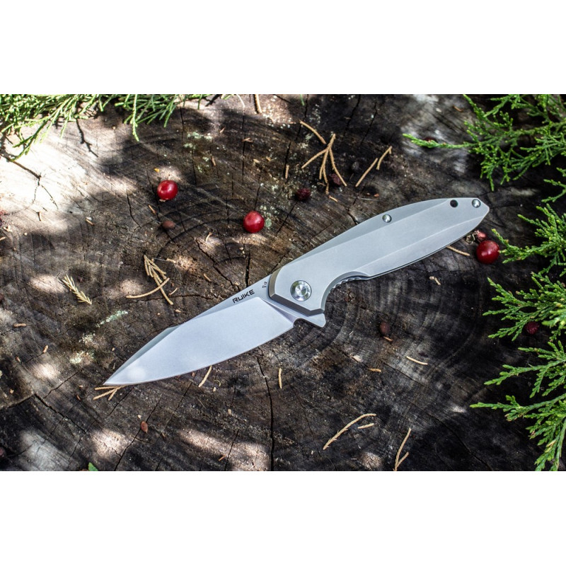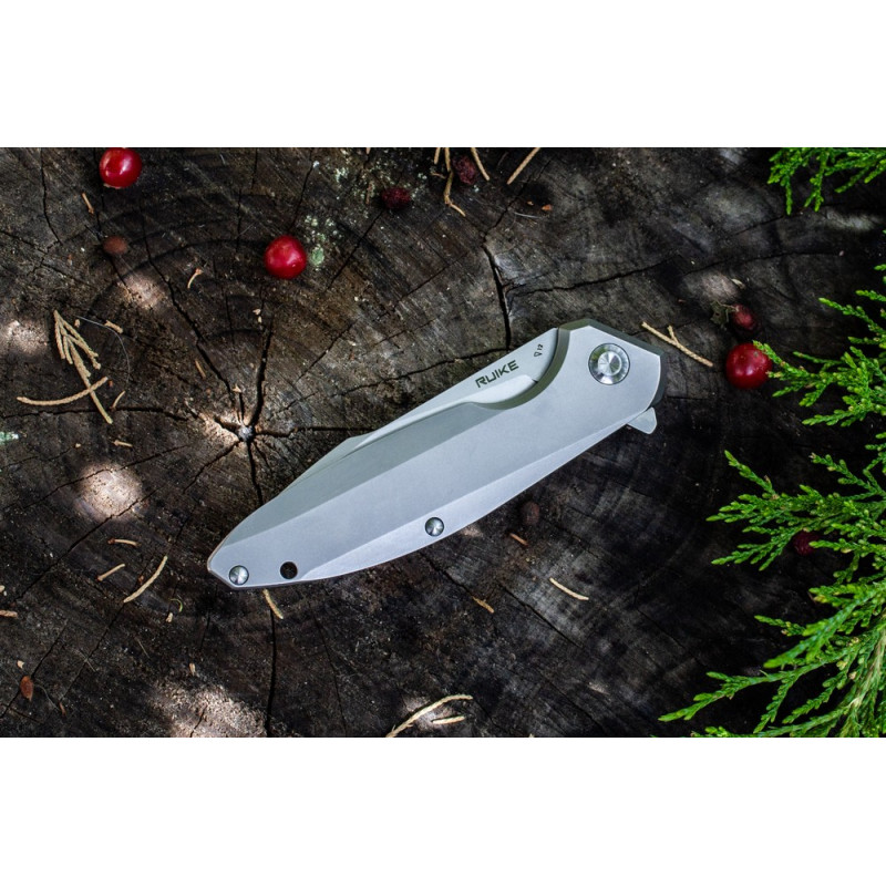 Такі складні ножі, як Ruike P128-SF, є оптимальним варіантом, коли необхідний універсальний інструмент. Адже вони легко справляються і з повсякденними завданнями, і з тімі, що виникають під час туристичних поїздок на природу. Така універсальність легко пояснюється скрупульозним підходом виробників до вибору матеріалів і загальному якістю виготовлення ножів. Лезо даної моделі виконується зі сталі 14C28N, яка виробляється в Швеції. Це відмінно збалансована нержавійка з високим рівнем твердості в результаті гарту (до 60 HRC). Довжина клинка в моделі Ruike P128-SF дорівнює 93 мм. Оскільки цим ножем цілком можна виконувати різні господарські роботи, які актуальні під час риболовлі або туристичного походу, його лезо зроблене досить міцним за рахунок товщини клинка 3,5 мм. Щоб було зручно різати ножем будь-які матеріали, лезо ножа зроблено добре заточеним. Крім того, особливістю даної моделі є шліфування Stone washed, яка робить метал матовим і не відбиває сонячні промені.