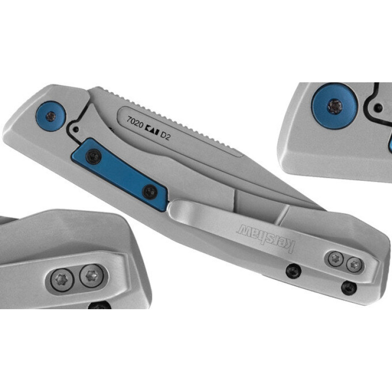 Клинок виконаний з високовуглецевої сталі марки D2, якій властива підвищена міцність, зносостійкість і ударна в'язкість, а також здатність зберігати ріжучу кромку гострою протягом тривалого періоду часу. Клинок витягується завдяки подпальцевой виїмки і надійно фіксується сталевою пластиною замка Frame Lock.