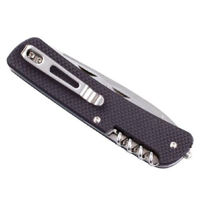 Матеріалом для ножа і всіх інших інструментів цієї кишенькової моделі є сталь-нержавейка 12С27. Вона поставляється з Швеції і добре відома своєю збалансованістю. Даний метал відмінно протистоїть корозії, що дуже важливо для туристичного ножа. Крім того, він має твердість 58-59 HRC, яку придбав в процесі криозакалки, а тому легко заточується, але довго не тупиться.