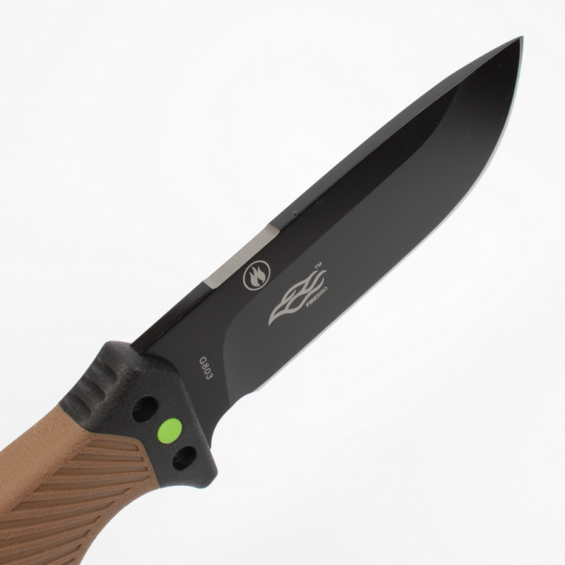 Простий і надійний туристичний ніж Ganzo G803 з фіксованим клинком відмінно підійде для активного відпочинку на природі. Він досить міцний для виконання різних трудомістких завдань і довго залишається гострим. Ці особливості обумовлені застосуванням для виготовлення клинка нержавіючої сталі марки 8Cr13 і його подальшої загартування до ~58 HRC.