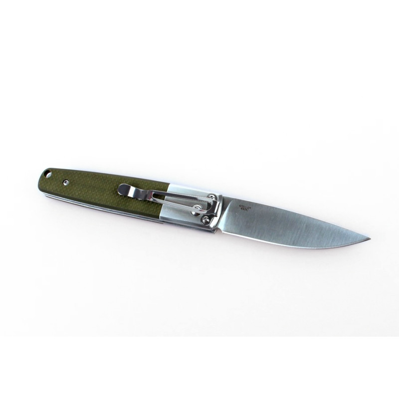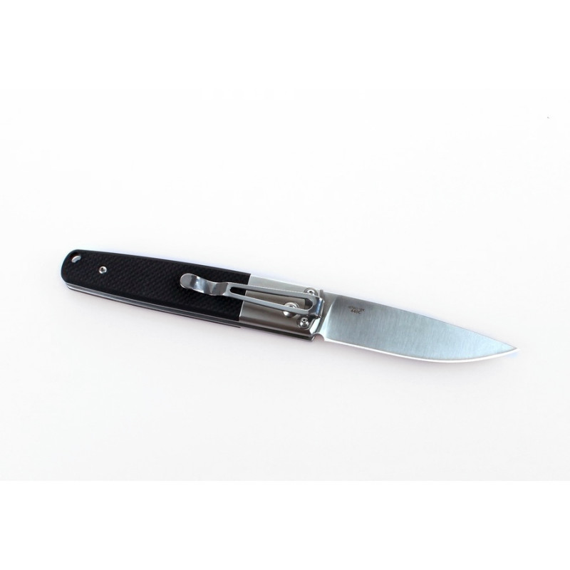 Рукоятка також частково зроблена зі сталі. Другий використовується для її матеріал — сучасний полімер G10. Це дуже міцне і довговічне композитне волокно. Поверхня рукоятки — текстурована, що покращує її зчеплення з долонею. На внутрішній стороні розташована металева кліпса для приєднання до поясного ременя або фіксації в кишені. Ця невелика деталь дозволяє тримати ніж під рукою і не втратити його.