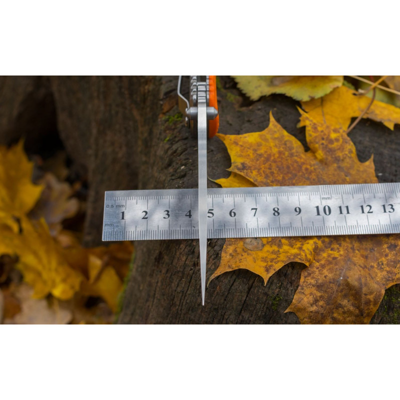 Для того, щоб ніж міг прослужити довгий час, його клинок виготовлений з нержавіючої сталі високої якості -440С. Цей сплав відрізняється хорошою опірністю до корозії і, в той же час, досить великий твердістю — близько 58 HRC. Завдяки цьому, ніж довго залишається гострим навіть без регулярного підгострювання. Довжина леза становить 9,5 см при товщині по обуху 0,4 див. Разом з ручкою довжина готового до роботи ножа становить 21,5 див. В закритому ж вигляді він набагато більш компактний — всього 12 см в довжину.