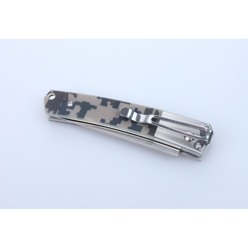 Рукоятка ножа має металевий ділянку ближче до клинку і накладки з сучасного виду пластику G10. Це композитний матеріал з епоксидної смоли і скловолокна. Він набагато міцніше інших видів пластику і відрізняється великою довговічністю. Завдяки тому, що G10 легко забарвлюється, покупці можуть вибрати ніж з ручкою зеленого, чорного або камуфляжного кольору. У кожному варіанті передбачено отвір для страхувального ремінця на руку і металева кліпса.