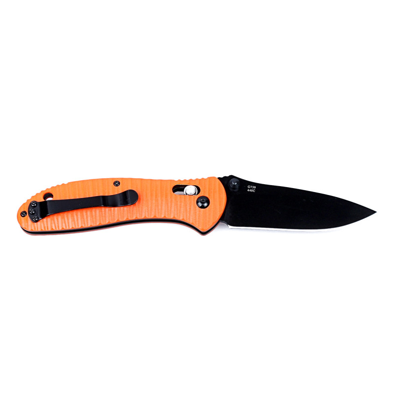 Ніж повинен бути практичним і красивим. Саме таким компанія Ganzo зробила складаний ніж G7393Р. Лезо в цій моделі виконаний у формі drop-point і виготовлено із нержавіючої сталі 440С. Цей тип сталі має твердість 58HRC, що робить можливим тривалий час зберігати заточку. Підточити ж затупившийся ніж кожен користувач може навіть самостійно. Для гладко заточеного леза, як у Ganzo G7393Р, зробити це буде не складно. Додаткової уваги заслуговує темне покриття клинка. Воно матове і не відбиває сонячні промені або світло ліхтаря, а тому ножа підходить для мисливців і використання інших тактичних цілях. Крім того, чорне покриття, яке зроблено за допомогою сучасних порошкових фарб і не стирається з часом, виконує роль додаткового захисту металу від корозії. Ну і нарешті, ніж з темним лезом дуже стильно виглядає.