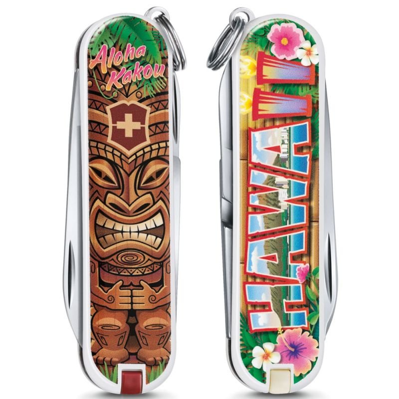 Колекційний складаний ніж-брелок CLASSIC LE -Aloha Kakou - 58мм/2 шари/7 функцій/накладки з малюнком/ножиці/Лимитированый випуск (Lim. Ed.) + чохол