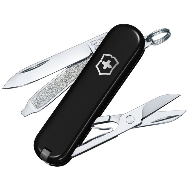 Компактний швейцарський ніж-брелок CLASSIC 58мм/2 шари/7 функцій/чорні накладки/чохол/ножиці (блістер) Victorinox 0.6223.3B1 Швейцарія
