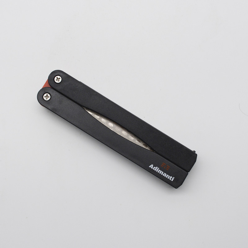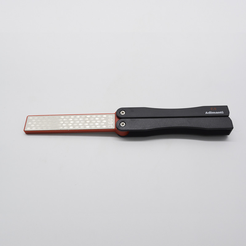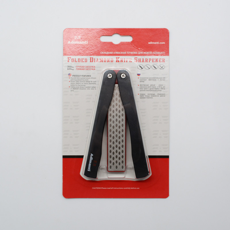 Точилка Adimanti ADSH105 створена спеціально для туристів і всіх інших любителів проводити свій вільний час на природі. Вона компактна ефективна, зручна у використанні. Безпосередньо точильний камінь являє собою брусок довжиною 10 см і шириною 2 см. З обох боків на нього гальванічним методом нанесено найбільш стійке алмазне покриття. Його зернистість з однією з сторін становить 360 грит, що підходить для використання під час грубої початкової заточування сильно затупленого леза. З зворотного боку, зернистість точильного каменю становить 600 грит і підходить для виконання основних робіт по заточенню. При цьому, важливо, що користувач може самостійно вибрати, під яким кутом заточувати свій ніж, тому дана модель підходить для клинків абсолютно будь-якого призначення: від филейных, до мисливських. Крім того, за допомогою Adimanti ADSH105 можна заточити ножиці або деякі інші інструменти. Ніж після заточки рекомендується промити в воді і витерти насухо, а точильний камінь протерти м'якою щіткою.