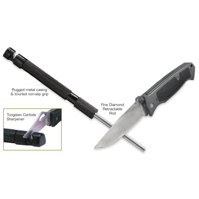 Lansky Tactical Sharpening Rod компактна тактична точилка, яка складається з двох частин: карбидового стрижня, призначеного для грубої заточування ножа, і алмазної точила, призначеної для доведення ножа. Зручний прогумований корпус не дозволять руці ковзати під час заточування леза ножа, а складна конструкція точила забезпечить її комфортне зберігання.