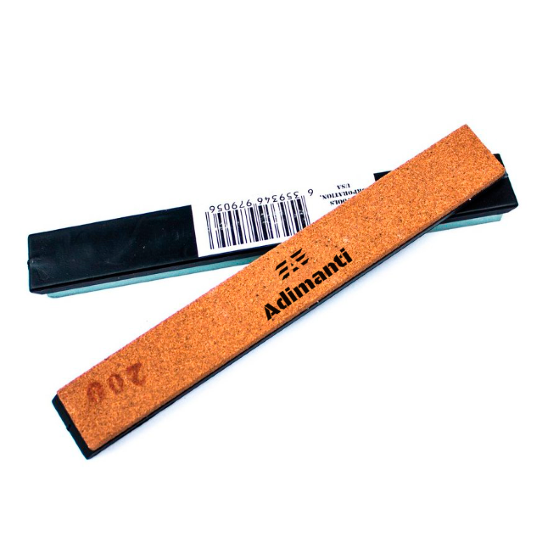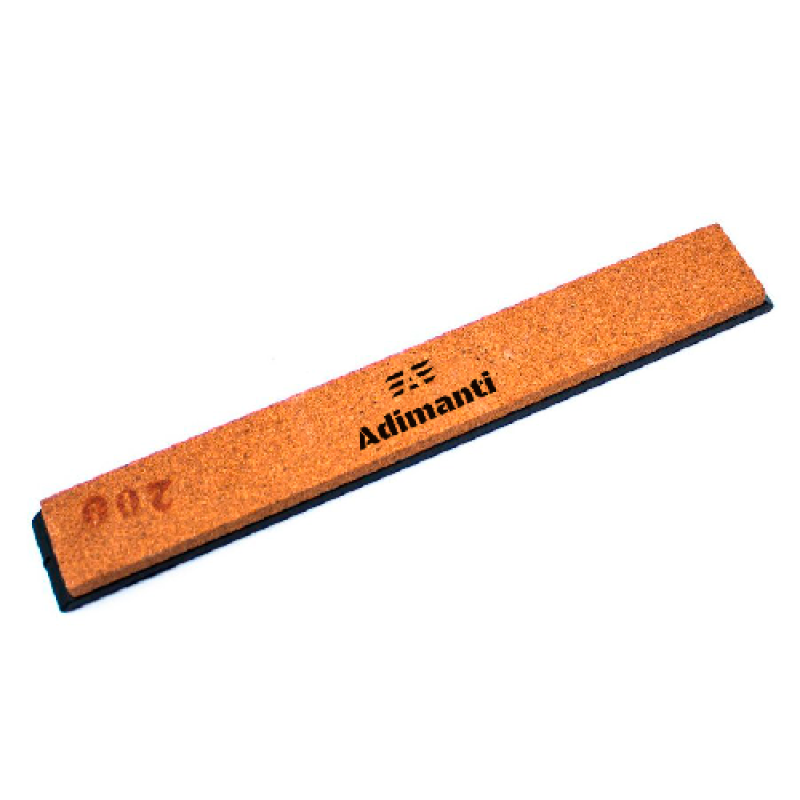 Штучний камінь Adimanti 200 — це високоякісний додатковий камінь для заточування ножів і будь-яких інших інструментів. Його зернистість становить 200 grit, а тому, камінь добре підходить для видалення слідів після найбільш грубих обдирних операцій. З його допомогою проводиться наступний після виправлення пошкоджених лез етап заточування. Камінь приклеєний до пластиковій підкладці, розмір якої в довжину становить 15,7 см, а по ширині — 2,2 див. Габарити самого каменю трохи менше. Adimanti 200 прекрасно підійде в якості запасного змінного каменю до таким популярним точилкам як Ganzo, наприклад, Touch Pro Steel, Touch Pro, модель Touch Pro Ultra; оригінальними Apex: моделі Edge Pro або Edge Pro Professional. Камінь можна використовувати і для заточування ножів вручну. Перед використанням його рекомендується змочити водою, а після — промити і витерти.