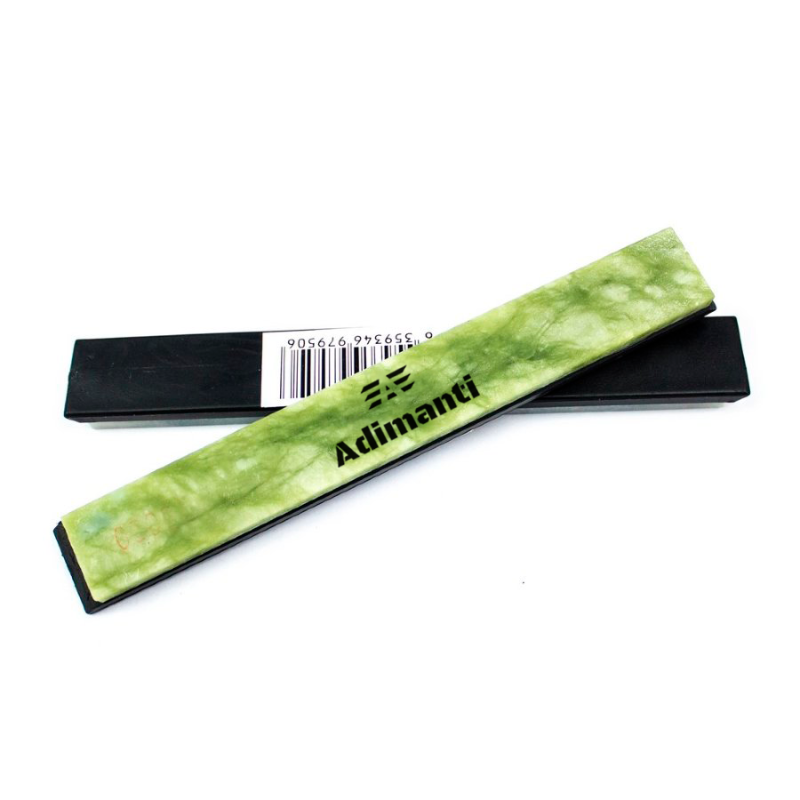 Точильний камінь Аdimanti 10000 — один з найбільш гладких в асортименті точильних поверхонь. Його використовують у тому випадку, коли необхідно досягти бритвеної гостроти ножа або будь-якого іншого інструменту. Також цей камінь з натурального матеріалу допоможе відновити заточку злегка затупленого ножа. Його можна застосовувати самостійно, у тому числі, брати з собою на природу, або ж встановити на ручний верстат для заточування. Камінь розміщується на пластиковій підкладці, яка трохи більше за розміром, ніж сам Аdimanti 10000. Розмір основи становить 22х157 мм.