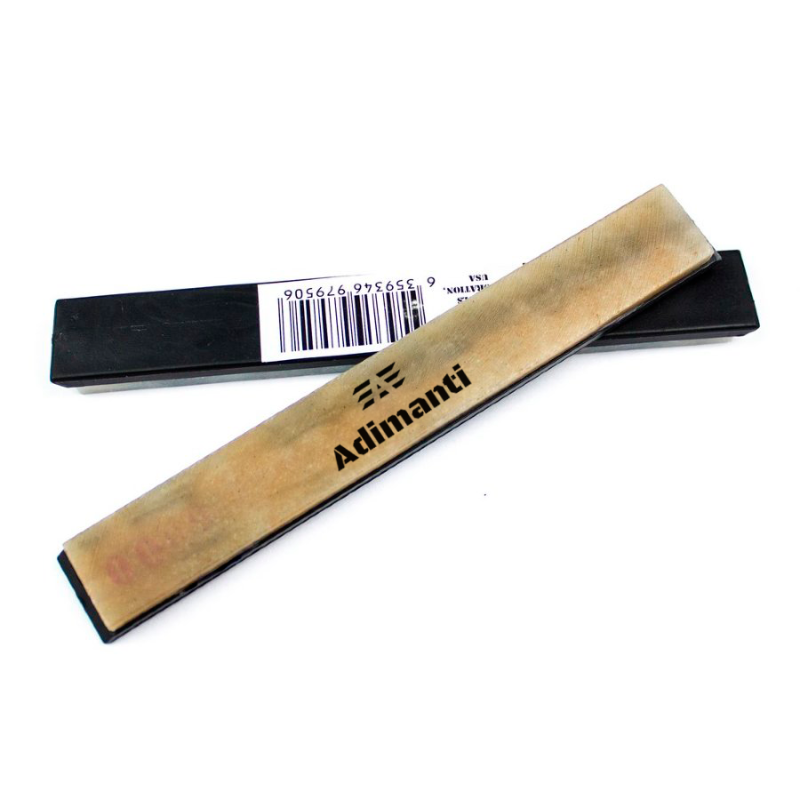 Природні точильні камені забезпечують найкращий результат заточування і саме їм віддають перевагу професіонали. Такі камені здатні забезпечити дійсно якісний результат навіть для найбільш твердих марок сталі, а під час заточування не перегрівають ріжучу кромку. Це сприяє не тільки отриманню гострого леза, але і довговічності клинка. Точильний камінь Аdimanti 6000 має дрібнозернисту поверхню, яка дає гладку і якісно відполіровану поверхню сталі. Камінь приєднаний до пластмасовій підкладці, трохи більшою за розміром, ніж сам камінь. Його можна встановити на точило, наприклад, таку, які пропонують бренди Apex і Ganzo, або ж відполірувати за допомогою каменю клинок вручну.