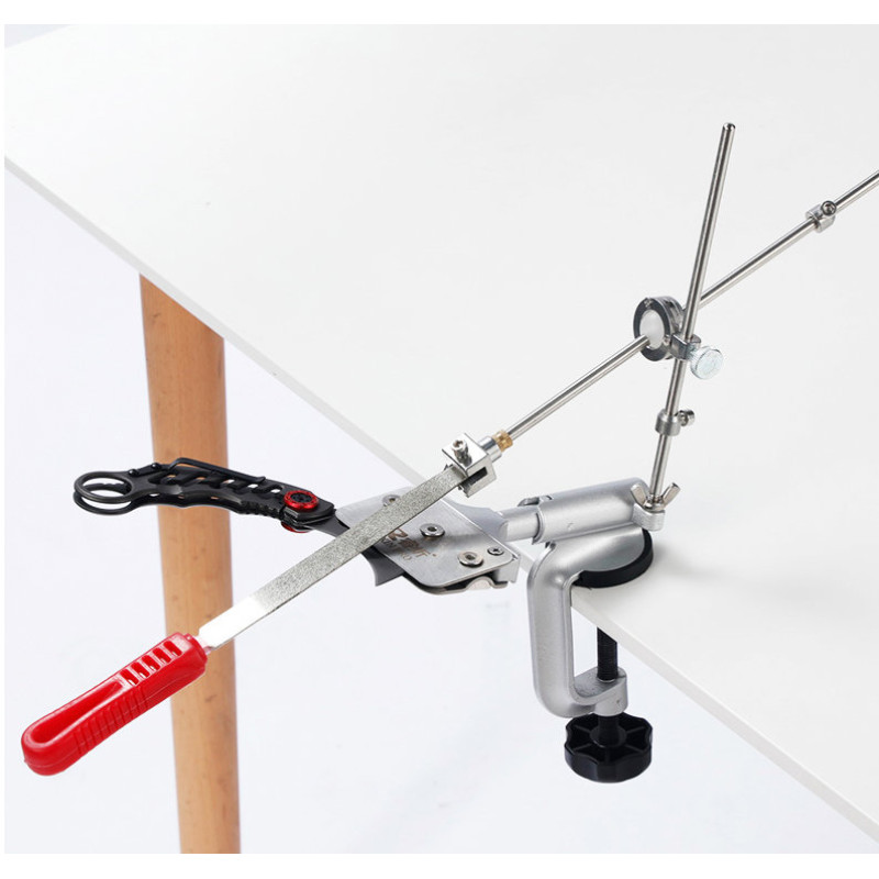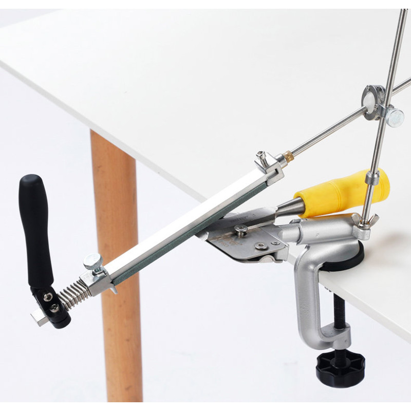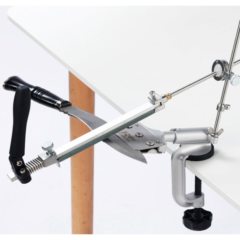 Модель Ruixin RX-008 — це нова модель "клона" на відому точило Edge Pro. Вона повністю виконана з металу, нове 4 покоління з нержавійки + алюмінієвий сплав. Підстава точила можна прикрутити до стільниці лещатами, які йдуть в комплекті. Точильний верстат збирається з декількох деталей, тому в розібраному вигляді він дуже компактний і зручний для транспортування. В комплект входить три точильних каменю, кожен з яких закріплений на пластиковій підкладці. Можна досить швидко закріпити на направляючої і по черзі змінювати для досягнення найкращого результату. Зернистість цих каменів складає 120, 320, 600 і 1500 грит. Виробники рекомендують заточувати лезо плавними рухами «від себе», не натискаючи на клинок до появи заусенца. Крім ножів, з допомогою Ruixin Pro 4 RX 008 можна заточити ножиці, будівельні або сільськогосподарські інструменти, а також інші предмети, що потребують в такому догляді. Кут заточування кожен користувач може вибрати самостійно, завдяки чому вдається якісно заточити ножі різного призначення: товсті мисливські, туристичні або найбільш тонкі філейні.