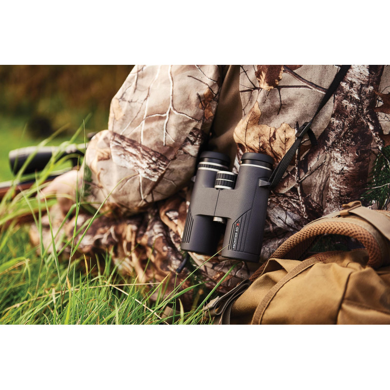 Новая флагманская линейка биноклей Hawke Frontier ED X создана без компромиссов: потому эти бинокли позволяют видеть больше, передают изображение реалистичней, защищены от внешних воздействий лучше и в использовании удобней чем можно ожидать. Увидеть больше позволяет широкоугольная конструкция окуляра, благодаря чему бинокли этой серии имеют максимально широкое поле зрения и четко фокусируются на предметах на расстоянии всего от двух метров. За передачу реалистичного изображения, как по форме, так и по цвету и контрастности, отвечают объективы из низкодисперсного ED-стекла и специальные просветляющие, фазово-контрастные и диэлектрические покрытия оптических поверхностей. Защита от внешних воздействий достигается за счет прочного магниевого корпуса, полной водозащиты, заполнения азотом, водо-грязе отталкивающего покрытия объективов и наличия закрепленных на объективах и на ремешке защитных крышек. Удобство и удовольствие от использования данного бинокля кроется не только в его компактном эргономичном дизайне, но и в точности сборки и работы механических узлов, в качестве материалов внешней отделки, а также, не в последнюю очередь, в аксессуарах, которые обеспечивают надежное хранение, транспортировку, и быстроту работы с биноклем. Бинокли Hawke Frontier ED X дают ощущение полного погружения в наблюдаемый пейзаж.