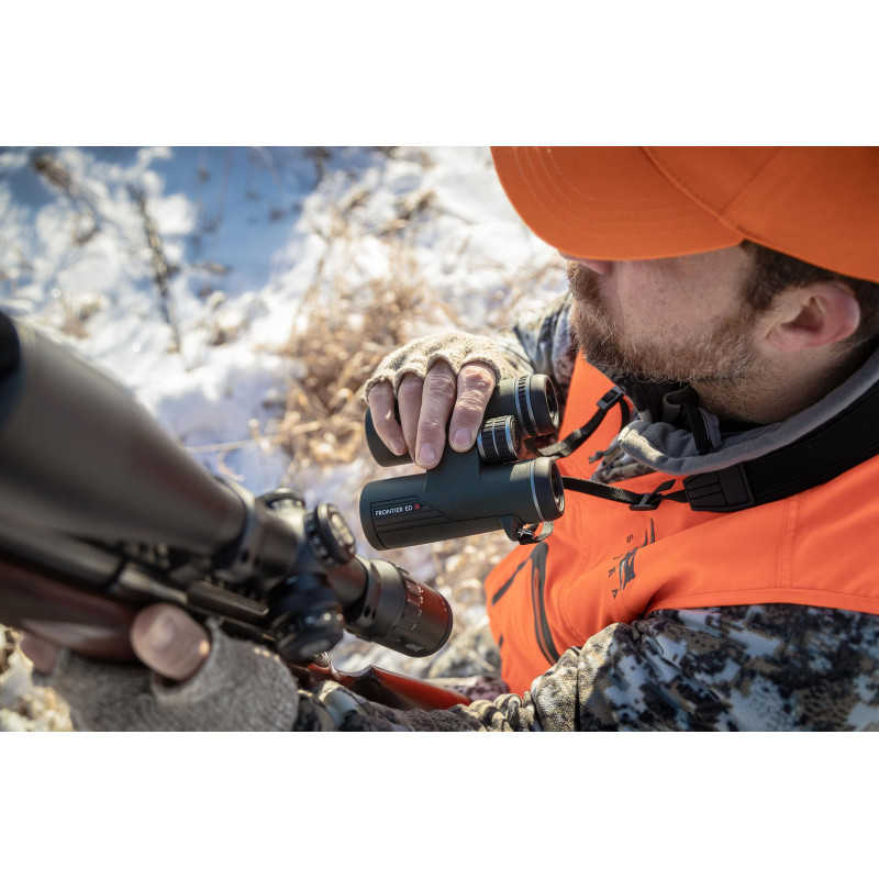 Новая флагманская линейка биноклей Hawke Frontier ED X создана без компромиссов: потому эти бинокли позволяют видеть больше, передают изображение реалистичней, защищены от внешних воздействий лучше и в использовании удобней чем можно ожидать. Увидеть больше позволяет широкоугольная конструкция окуляра, благодаря чему бинокли этой серии имеют максимально широкое поле зрения и четко фокусируются на предметах на расстоянии всего от двух метров. За передачу реалистичного изображения, как по форме, так и по цвету и контрастности, отвечают объективы из низкодисперсного ED-стекла и специальные просветляющие, фазово-контрастные и диэлектрические покрытия оптических поверхностей. Защита от внешних воздействий достигается за счет прочного магниевого корпуса, полной водозащиты, заполнения азотом, водо-грязе отталкивающего покрытия объективов и наличия закрепленных на объективах и на ремешке защитных крышек. Удобство и удовольствие от использования данного бинокля кроется не только в его компактном эргономичном дизайне, но и в точности сборки и работы механических узлов, в качестве материалов внешней отделки, а также, не в последнюю очередь, в аксессуарах, которые обеспечивают надежное хранение, транспортировку, и быстроту работы с биноклем. Бинокли Hawke Frontier ED X дают ощущение полного погружения в наблюдаемый пейзаж.