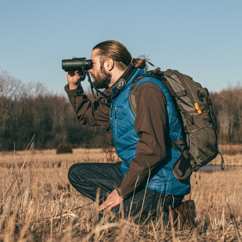 Waterproof & fogproof. Данный бинокль имеет водозащиту по классу IPX7 и защиту от образования внутреннего конденсата. Корпус герметизирован каучуковым уплотнительным O-кольцом, что позволяет биноклю находиться до 30 минут под водой на глубине 1 метр, не пропуская влагу внутрь. Из внутренних полостей корпуса воздух и пары воды вытеснены азотом N2, который не образовывает конденсата на внутренних поверхностях оптики при резком перепаде температур.