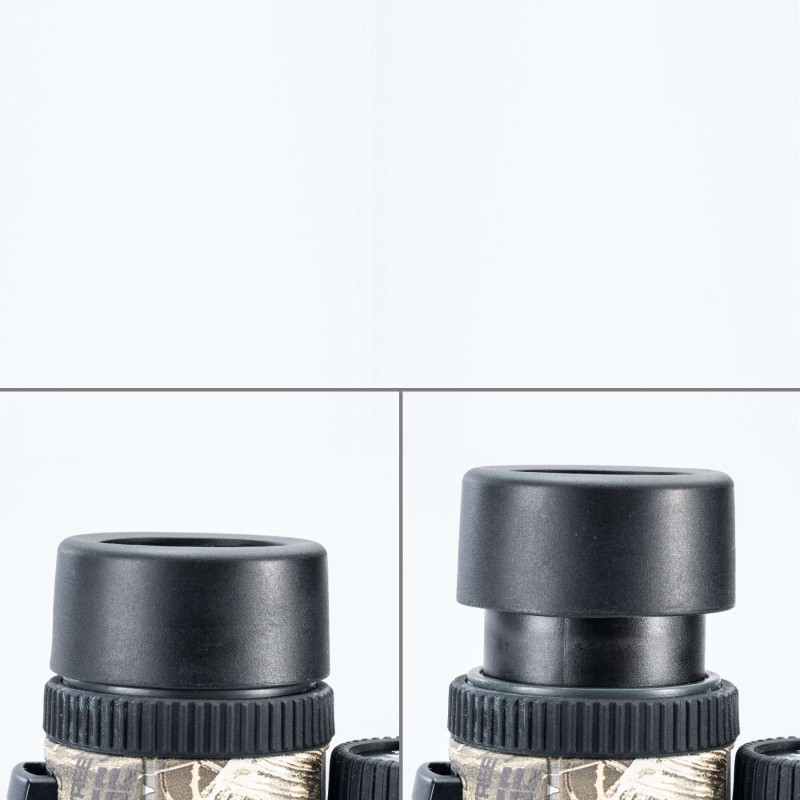 2 Stage Eyecups. Правильно сконструированные оправы окуляров не только повышают комфорт при длительных наблюдениях, но, в первую очередь, позволяют с одинаковым удобством использовать бинокль пользователям с разным анатомическим строением глаз, а также пользователям в очках. В данном бинокле используются выдвижные оправы окуляров типа Twist-Up, имеющие 2 уровня фиксации.